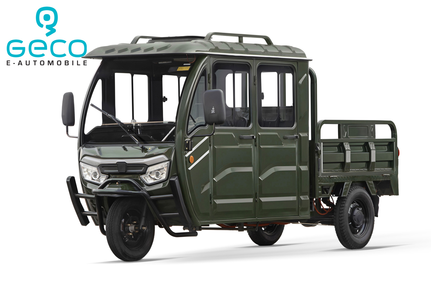 Der GECO Lite Truck Duo P160 Doppelkabine ist ein kompakter, elektrisch angetriebener Kabinenroller der Fahrzeugklasse