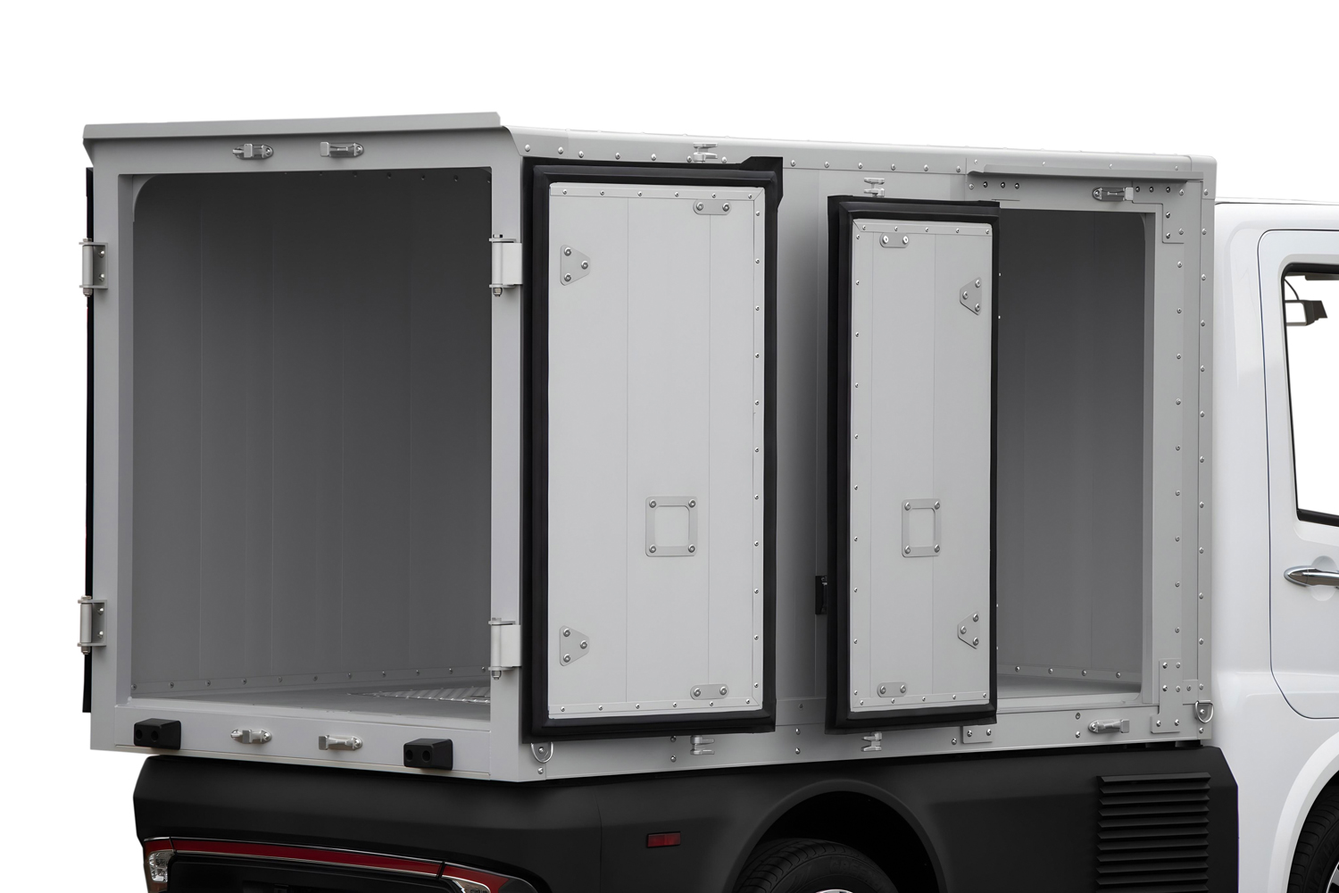 - Ladefläche mit festem Kofferaufbau, ideal zum Schutz vor Witterung